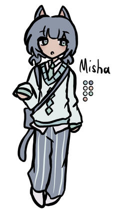 personality: misha struggles with showing emotion and can come across as uncaring at first. however, he's a curious person and quite easily attached to others. he likes people-watching, trying to figure out unspoken social cues. despite being quite talented academically, he often procrastinates and sleeps at home instead of doing homework.