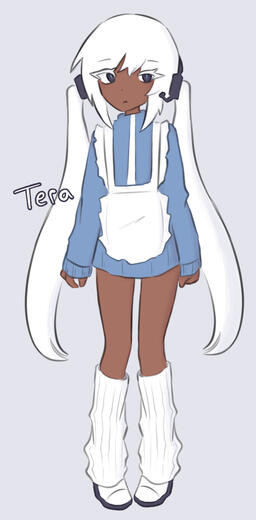 personality: tera struggles with showing emotion, usually expressionless. despite that exterior, she has a mischievous sense of humor, coming across as someone who likes to mess with their friends. she's more well versed in the world of music than the outside world; not going out often, and likes to make up excuses to get out of social activities. has a humble vocal synth music channel online. they're good friends with misha and keiko; by extension, acquaintances with sana as well.